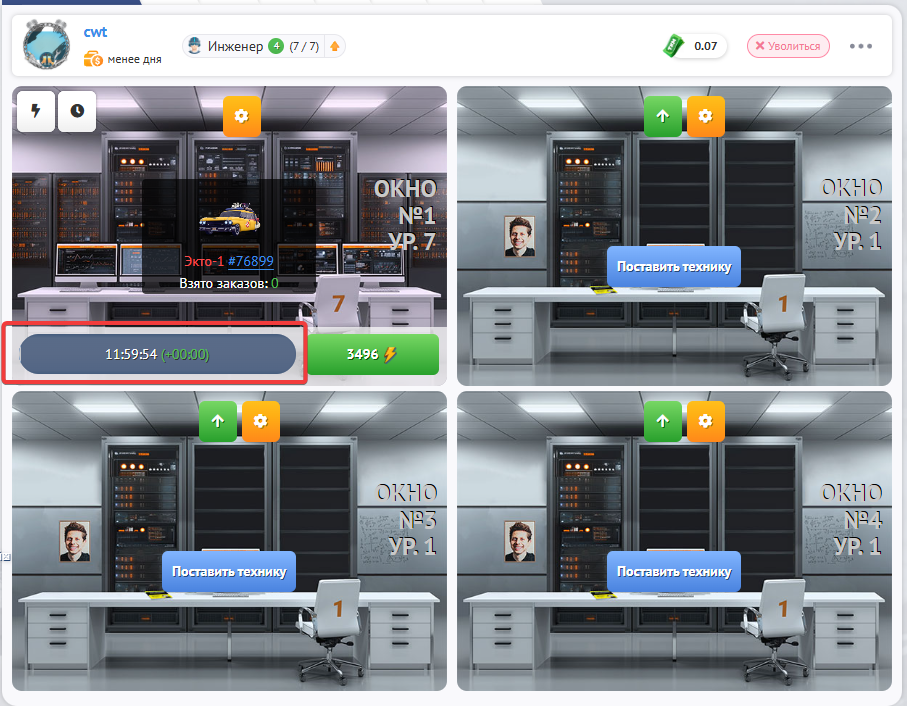 Владелец “Дата центра” может ограничивать типы оплаты и уровень обслуживаемой техники в каждом окне, а также выставлять наценку на услугу