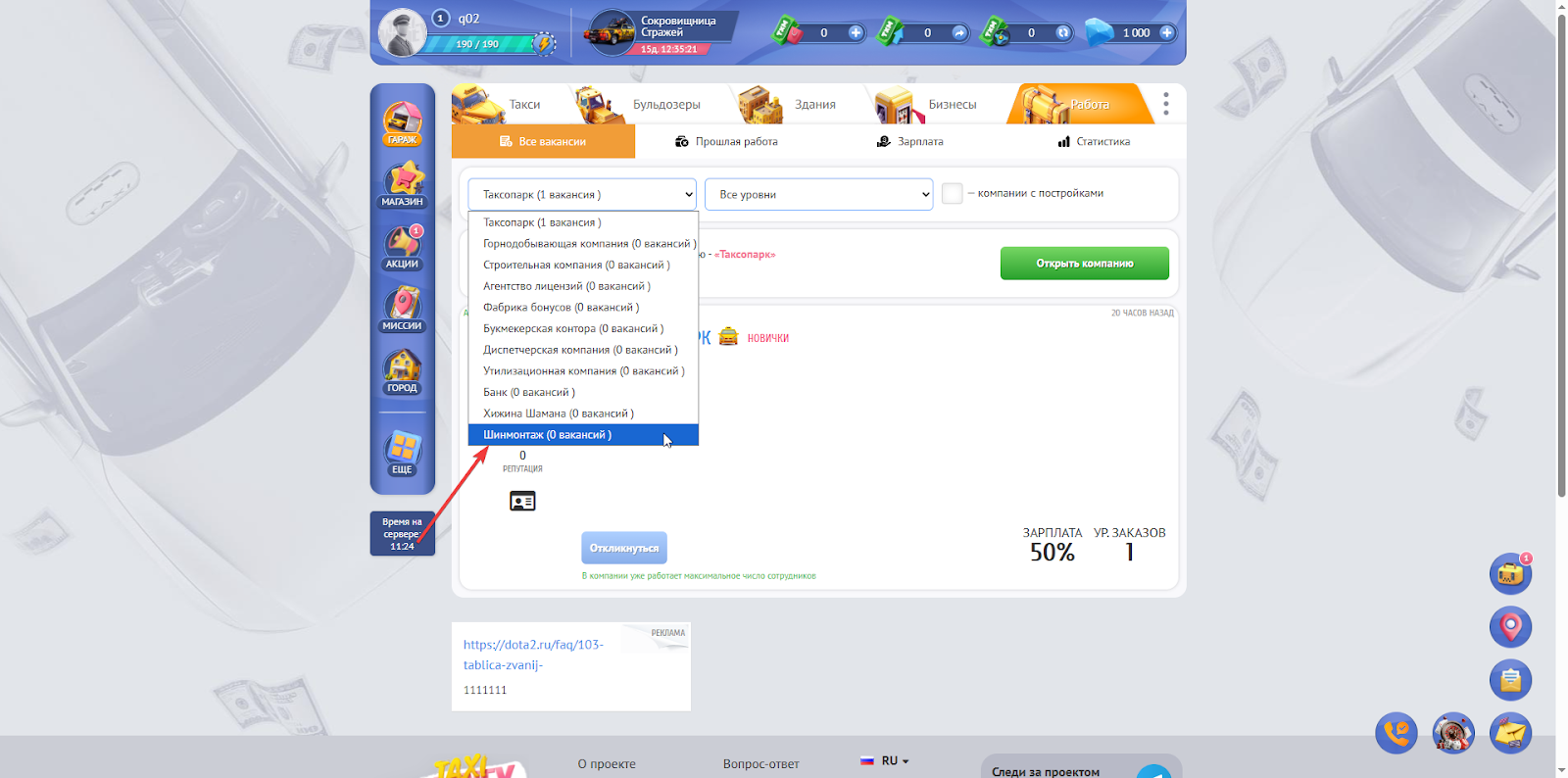 Постройте здание: Построить “шиномонтаж” достаточно легко. Нужно зайти на страницу Бизнесы