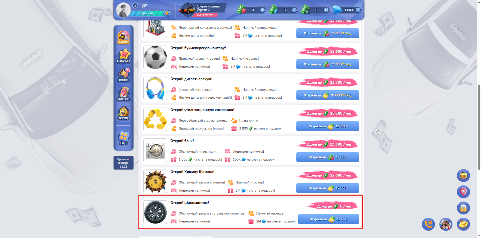 Найти здесь предложение “Открыть шиномонтаж” и кликнуть на “Открыть за …”