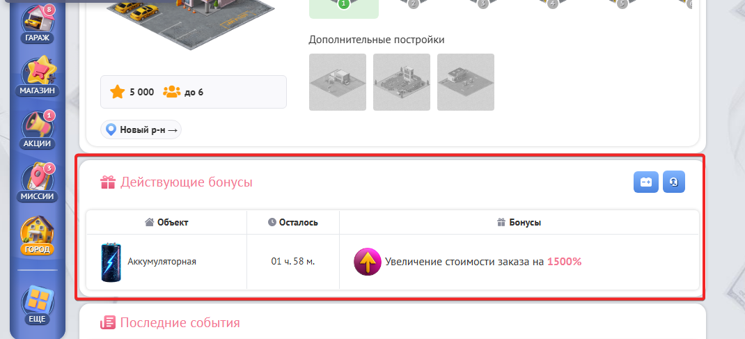 Открыть “аккумуляторную” можно со страницы “гаража” кликнув на аккумулятор